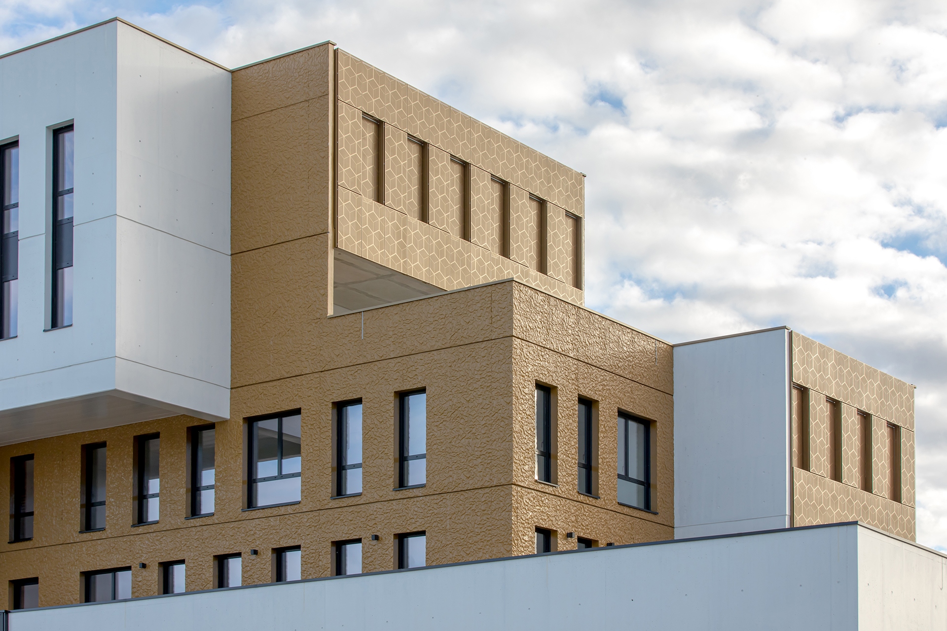 Cet ensemble tertiaire est particulièrement ambitieux tant dans son concept que dans son architecture. L’agence Artefact a imaginé des bâtiments modernes et intelligents faisant la part belle à la lumière avec des façades immaculées en partie recouvertes d’une résidence dorée.